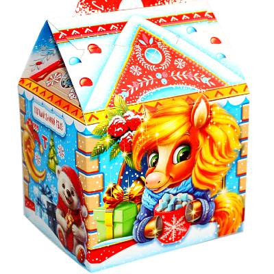 Красивая упаковка с символом года и конечно же любимые конфеты и сладости для самых маленьких.