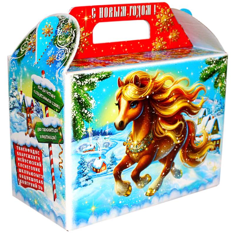 Детский новогодний подарок в картонной упаковке весом 1200 грамм